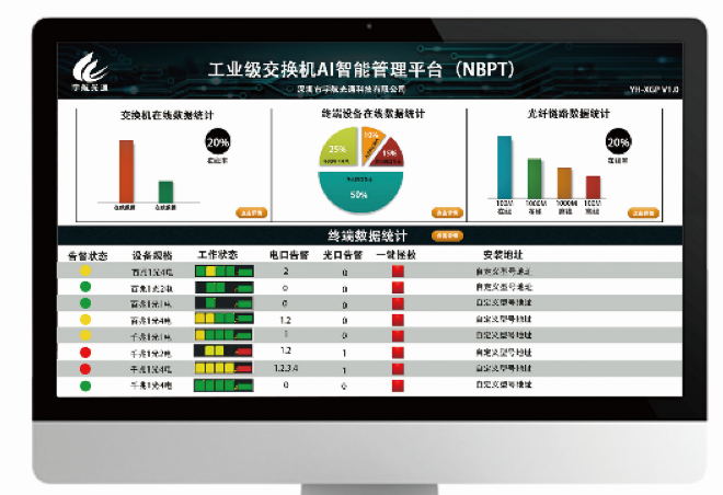 茅草屋的預算蓋出豪華別墅的效果,真正的低成本的前提下,實現(xiàn)安防傳輸?shù)目煽啃裕梢暬煽匦裕⑦m用于局域網(wǎng)技術為主的監(jiān)控場景,NBPT AI智能管理平臺有別于傳統(tǒng)SNMP,可實現(xiàn)前端一層管理工業(yè)交換機的狀態(tài)可視化,端口可視化,終端可視化,光纖鏈路可視化,流量寬帶可視化。