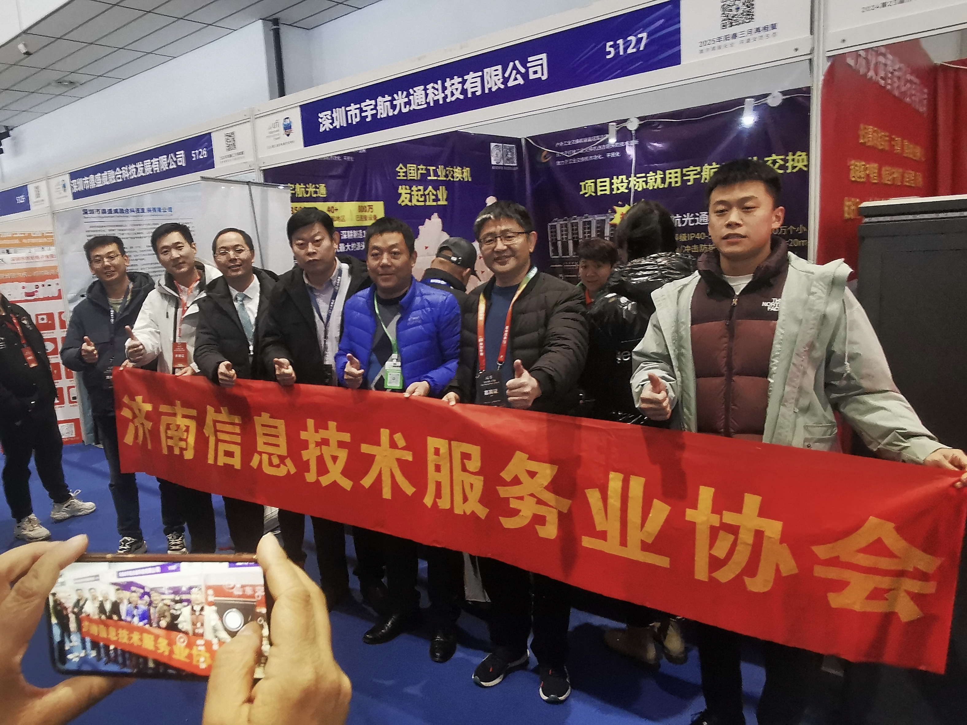 本次博覽會上,宇航工業交換機展臺人頭攢動,參觀者們紛紛駐足觀看、交流討論。宇航工業交換機的專業團隊也耐心地為參觀者們解答問題、介紹產品。許多業內人士對宇航工業交換機的全國產化戰略表示贊賞,并期待與宇航建立更緊密的合作關系。濟南信息服務業協會也親臨宇航展臺,與宇航團隊進行了深入的交流與合作探討。