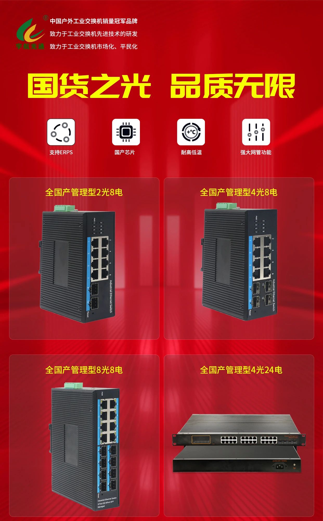 為了更好地服務(wù)于市場、服務(wù)于客戶,宇航工業(yè)交換機(jī)又一次重磅發(fā)布了全國產(chǎn)工業(yè)交換機(jī)。此次發(fā)布的全國產(chǎn)工業(yè)交換機(jī)系列,涵蓋了管理型2光8電、4光8電、8光8電、4光24電等多種規(guī)格,滿足了工業(yè)級(jí)網(wǎng)絡(luò)設(shè)備的全方位需求。這些產(chǎn)品基于全國產(chǎn)芯片設(shè)計(jì),從硬件到軟件,完全實(shí)現(xiàn)了國產(chǎn)化替代。雖然在性能和功能上與國際頂尖水平仍有一定差距,但這一系列產(chǎn)品的推出,標(biāo)志著中國在工業(yè)交換機(jī)領(lǐng)域的國產(chǎn)化進(jìn)程邁出了堅(jiān)實(shí)的一步,也表明國產(chǎn)化替代的道路正在加速。同時(shí),不僅為中國工業(yè)網(wǎng)絡(luò)設(shè)備領(lǐng)域注入了新的活力,更是國產(chǎn)芯片在工業(yè)應(yīng)用場景中的一次重要突破。