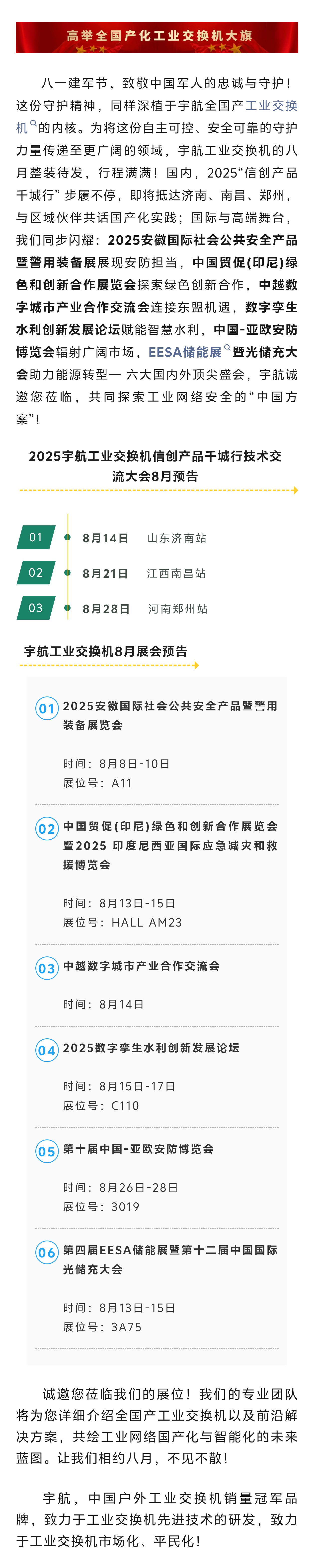 上一篇:2025安博會(huì)來(lái)了!宇航工業(yè)交換機(jī)邀您相約深圳!【展位號(hào):9B02】