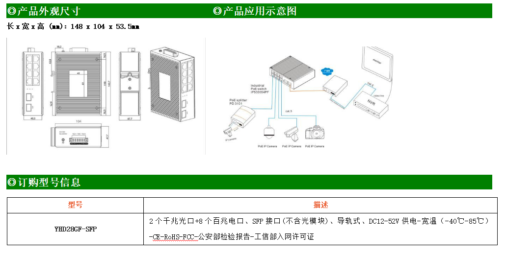 YH300-28GF-SFP工業(yè)級以太網(wǎng)交換機,支持8個10/100Base-T(X)電口和2個1000Base-X光口。產(chǎn)品符合FCC、CE、ROHS標準。YH300-28GF-SFP交換機具有-40℃~85℃的工作溫度,具有超強的堅固度能適應(yīng)各種嚴苛環(huán)境,也可以非常方便的安置在空間緊湊的控制箱中。導(dǎo)軌的安裝特性、寬溫操作及擁有IP40防護等級的外殼及LED指示燈,使YH300-28GF-SFP成為一個即插即用的工業(yè)級設(shè)備,為用戶的以太網(wǎng)設(shè)備聯(lián)網(wǎng)提供可靠、便捷的解決方案。