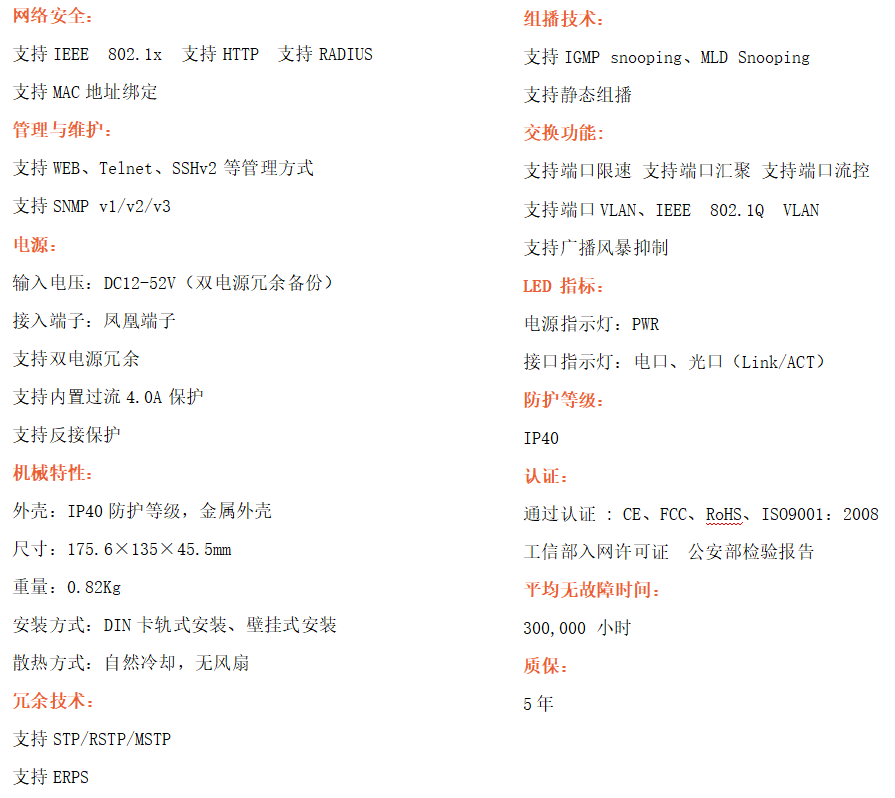 ●支持STP/RSTP/ERPS,SNMPv1/v2/v3,確保網絡安全