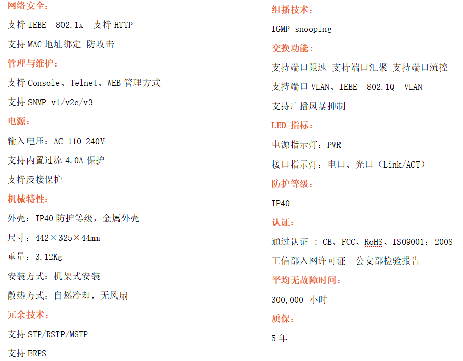 ●管理功能:支持WEB、CLI、SNMP管理方式
