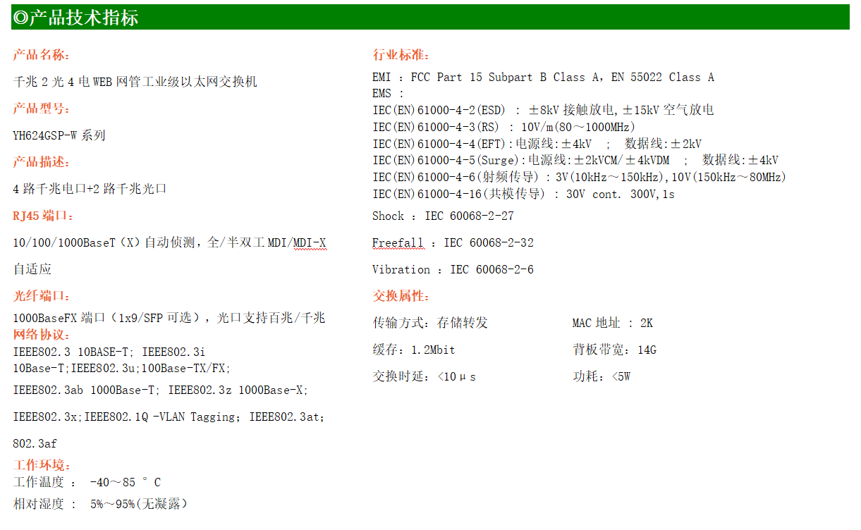 YH600-24GSP-W系列WEB管理工業(yè)級(jí)以太網(wǎng)PoE交換機(jī),產(chǎn)品符合FCC、CE、ROHS標(biāo)準(zhǔn),支持工業(yè)現(xiàn)場(chǎng)所需的以太網(wǎng)二層協(xié)議,保證通信網(wǎng)絡(luò)的穩(wěn)定性。該系列交換機(jī)采用低功耗、無風(fēng)扇設(shè)計(jì),確保無噪聲干擾,同時(shí)支持-40~85℃工作溫度和良好的EMC電磁兼容性能,保證在惡劣的工業(yè)環(huán)境中保持穩(wěn)定的工作,為工廠自動(dòng)化,智能交通,視頻監(jiān)控等工業(yè)應(yīng)用領(lǐng)域組建快速穩(wěn)定的網(wǎng)絡(luò)終端接入網(wǎng)絡(luò)提供安全可靠的解決方案。