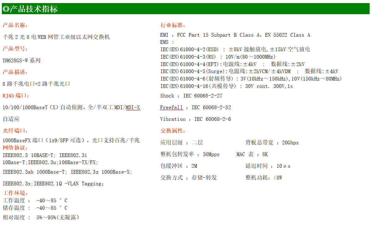 YH600-28GS-W系列WEB網(wǎng)管工業(yè)級以太網(wǎng)交換機,產(chǎn)品符合FCC、CE、ROHS標準,支持工業(yè)現(xiàn)場所需的以太網(wǎng)二層協(xié)議,保證通信網(wǎng)絡(luò)的穩(wěn)定性。該系列交換機采用低功耗、無風(fēng)扇設(shè)計,確保無噪聲干擾,同時支持-40~85℃工作溫度和良好的EMC電磁兼容性能,保證在惡劣的工業(yè)環(huán)境中保持穩(wěn)定的工作,為工廠自動化,智能交通,視頻監(jiān)控等工業(yè)應(yīng)用領(lǐng)域組建快速穩(wěn)定的網(wǎng)絡(luò)終端接入網(wǎng)絡(luò)提供安全可靠的解決方案。