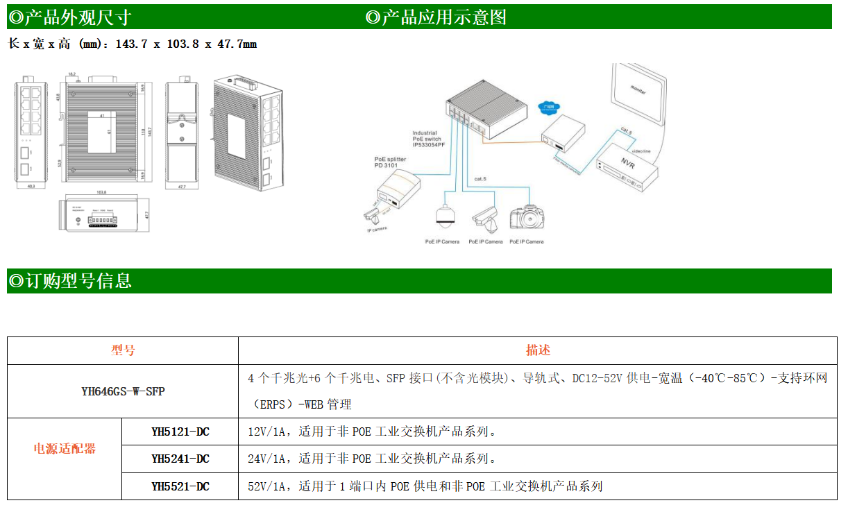 YH600-46GS-SFPWEB網管工業級以太網交換機,產品符合FCC、CE、ROHS標準,支持工業現場所需的以太網二層協議,保證通信網絡的穩定性。該系列交換機采用低功耗、無風扇設計,確保無噪聲干擾,同時支持-40~85℃工作溫度和良好的EMC電磁兼容性能,保證在惡劣的工業環境中保持穩定的工作,為工廠自動化,智能交通,視頻監控等工業應用領域組建快速穩定的網絡終端接入網絡提供安全可靠的解決方案。