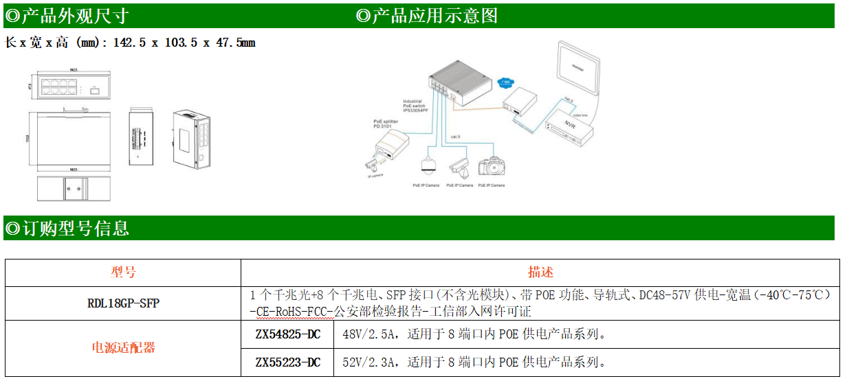 8路千兆POE電口+1路千兆FX光口工業(yè)級(jí)以太網(wǎng)POE交換機(jī),支持8個(gè)10/100/1000Base-TX電口和1個(gè)1000Base-X光口。產(chǎn)品符合FCC、CE、ROHS標(biāo)準(zhǔn)。RDL18GP交換機(jī)具有-40℃~75℃的工作溫度,具有超強(qiáng)的堅(jiān)固度能適應(yīng)各種嚴(yán)苛環(huán)境,也可以非常方便的安置在空間緊湊的控制箱中。導(dǎo)軌的安裝特性、寬溫操作及擁有IP40防護(hù)等級(jí)的外殼及LED指示燈,使RDL18GP成為一個(gè)即插即用的工業(yè)級(jí)設(shè)備,為用戶的以太網(wǎng)設(shè)備聯(lián)網(wǎng)提供可靠、便捷的解決方案。