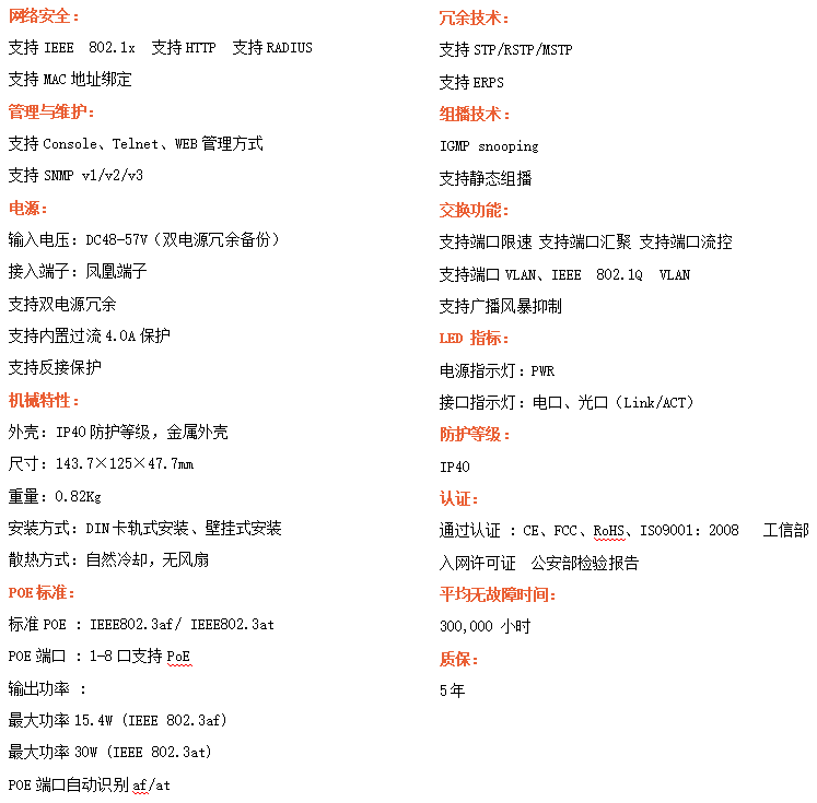 ●管理功能:支持WEB、SNMP管理方式