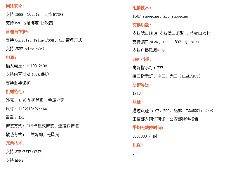 ●管理功能:支持WEB、CLI、SNMP管理方式