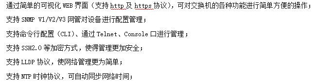 ●管理功能:支持WEB、CLI、SNMP等多種管理方式