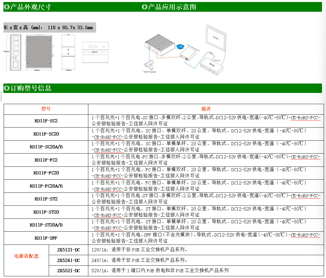 ●使用SC/FC/ST/SFP光纖接口