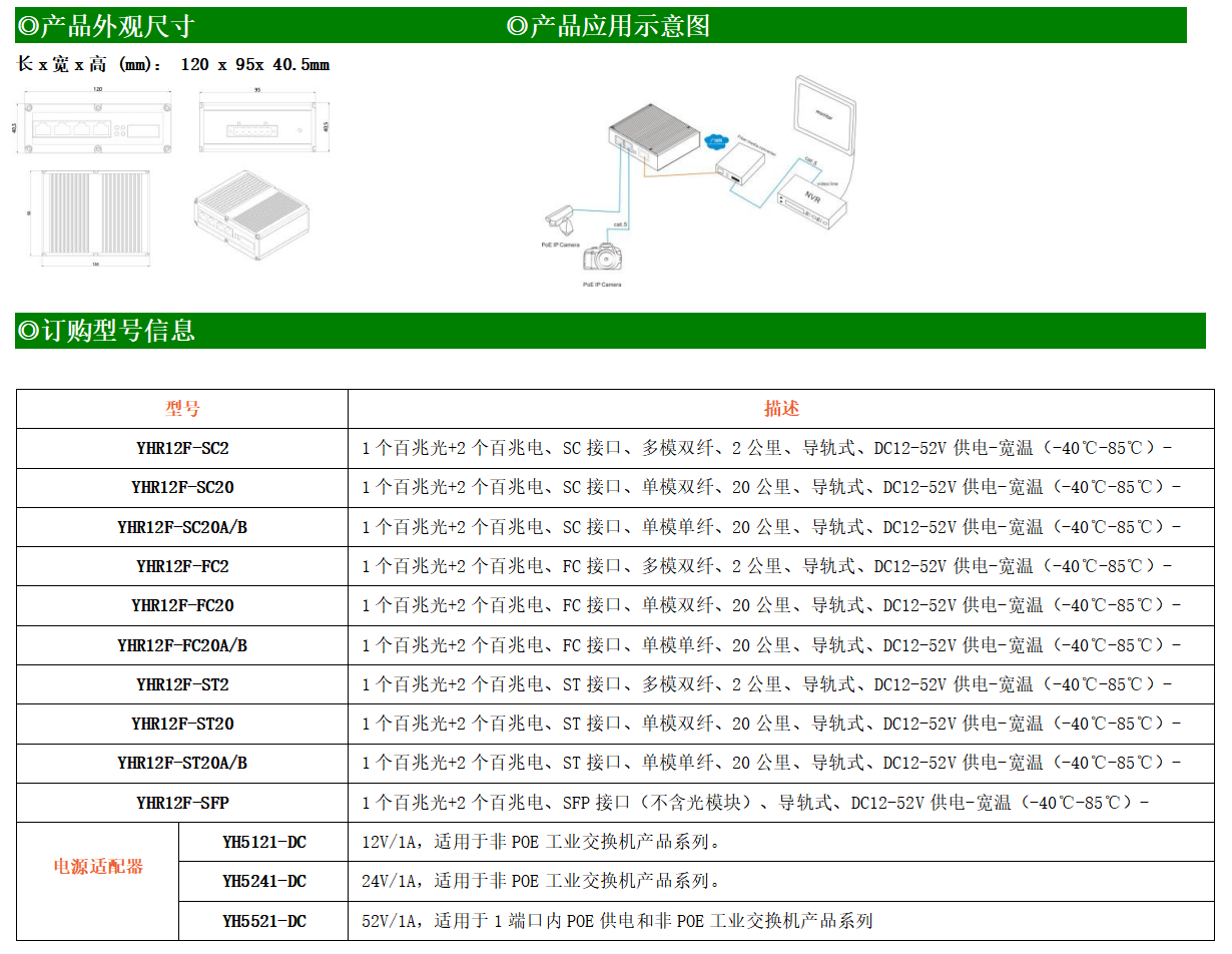 2路百兆電口+1路百兆FX光口工業(yè)級(jí)以太網(wǎng)交換機(jī),支持2個(gè)10Base-T/100Base-TX電口和1個(gè)100Base-X光口。產(chǎn)品符合FCC、CE、ROHS標(biāo)準(zhǔn)。YHR12F系列交換機(jī)具有-40℃~85℃的工作溫度,具有超強(qiáng)的堅(jiān)固度能適應(yīng)各種嚴(yán)苛環(huán)境,也可以非常方便的安置在空間緊湊的控制箱中。導(dǎo)軌的安裝特性、寬溫操作及擁有IP40防護(hù)等級(jí)的外殼及LED指示燈,使YH200-12F成為一個(gè)即插即用的工業(yè)級(jí)設(shè)備,為用戶的以太網(wǎng)設(shè)備聯(lián)網(wǎng)提供可靠、便捷的解決方案。