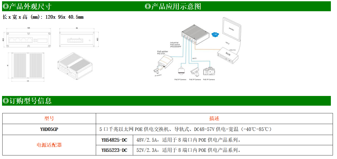 1路千兆上聯電口+4路千兆下聯電口工業級以太網POE交換機,支持1個10/100/1000Base-TX上聯電口和4個100Base-T/1000Base-TX下聯POE電口。產品符合FCC、CE、ROHS標準。YH300-05GP交換機具有-40℃~85℃的工作溫度,具有超強的堅固度能適應各種嚴苛環境,也可以非常方便的安置在空間緊湊的控制箱中。導軌的安裝特性、寬溫操作及擁有IP40防護等級的外殼及LED指示燈,使YH300-05GP成為一個即插即用的工業級設備,為用戶的以太網設備聯網提供可靠、便捷的解決方案。